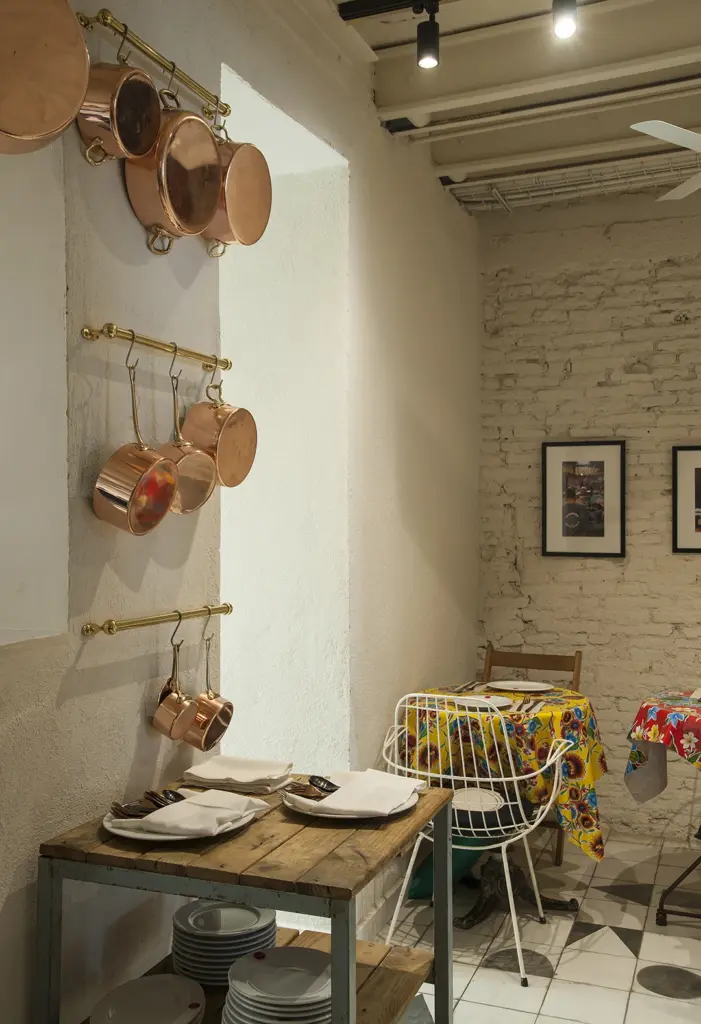 Un espacio que combina lo exótico con lo acogedor, integrando elementos vintage y detalles decorativos que evocan ambas culturas.
