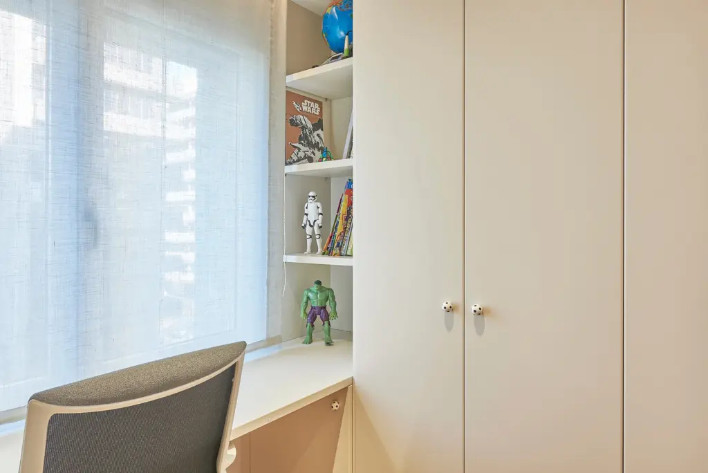 Se diseñaron dos dormitorios infantiles a medida, ofreciendo a cada niño su propio espacio personalizado dentro del hogar.